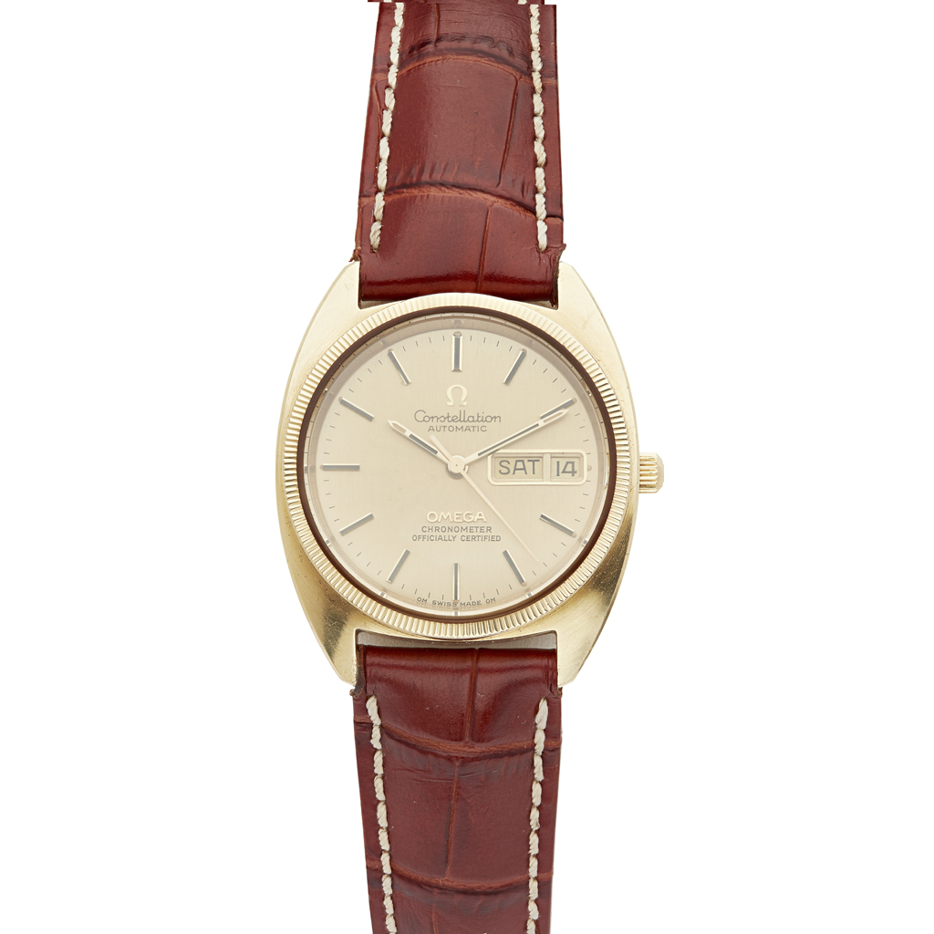 Constellation, with day, date, champagne dial, baton indicators, sweep second hand, automatic movement, observatory case back, leather strap, gold buckle