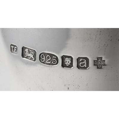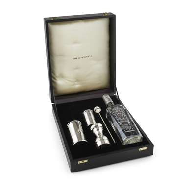 London 2000, in original case, with Millennium marks and maker's marks TF, comprising a Lea & Perrins sleeve, with inscription, 9.5cm high, a Tabasco sauce sleeve, with inscription, 7cm high (bottle with a silver lid); and a Pimm's spoon, 22.5cm long; with a later silver pepper grinder, hallmarked Birmingham, with Millennium marks and maker's marks WW