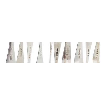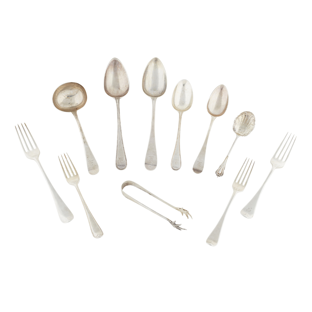 mixed makers and dates, primarily early 19th century, mainly Old English pattern, all engraved with same crest