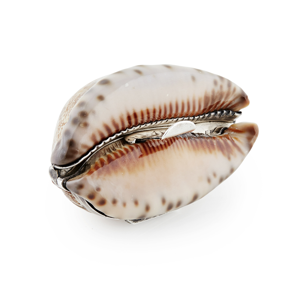 unmarked but probably Scottish, of typical form with unusual mounted three quarter opening flush hinged cover incorporating part of the shell, engraved to inside H.J.