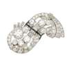 of open scrolling design, collet set with six graduated old cut diamonds, and throughout with old round, eight cut and rose cut diamonds, channel set baguette cut diamond detail, apparently unmarked