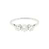 claw set with three graduated round brilliant cut diamonds, to a plain white metal shank, indistinctly marked
