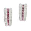 each channel set with a single row of square cut rubies, the surround pavé set with small round brilliant cut diamonds, to post and clip fittings, stamped 585