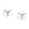 each composed of three cultured pearls, three baguette cut diamonds, and a small central eight cut diamond, to post and butterfly fittings, apparently unmarked