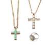 to include a cabochon opal and diamond set cluster ring; together with a 9ct yellow gold opal set cross with chain and another smaller similar