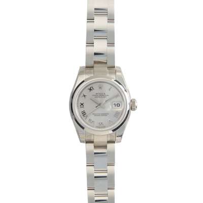 Oyster Perpetual Datejust model 179160, round silver dial with applied Roman numerals in silver colour, date aperture at 3, silver-coloured pencil hands, sweep centre seconds hand, screw-down crown with coronet, on a signed Rolex stainless steel Oyster bracelet strap with highly polished central links, with a signed Rolex foldover clasp, in a box, with outer box, with booklet, no guarantee card
