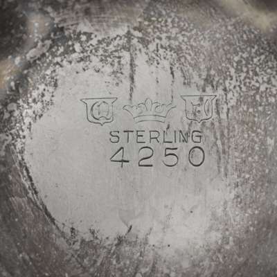 marks for Quaker Silver Co. of tapered form and everted rim, to a cast foliate and lion mask collar with spreading circular foot