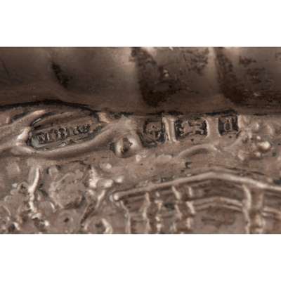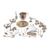 marked to the underside, of low oval form, applied cast bracket feet; together with a silver-gilt continental paten; an unmarked mug, various novelty figures and other items