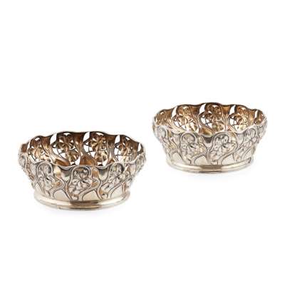 makers mark for Bruckmann & Sons, of Germany, retailed by Bernard Dahmen, Herleen, of the Netherlands, each of circular form with silver gilt interior, the pierced sides decorated with scrolling flowers