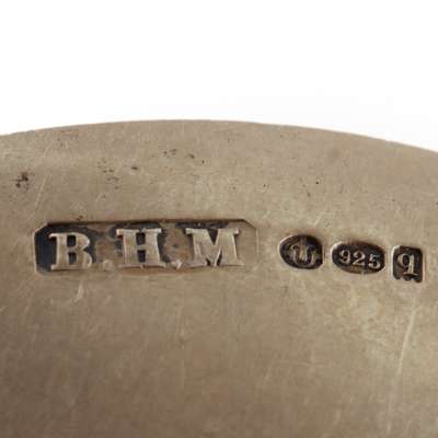 to include, a Danish serving spoon, fig leaf bowl and cabochon set to terminal; and another plain with round bowl; a collection by Evald Nielsen, various patterns; two by Grunlund; together with various serving ware, a brooch and various charms