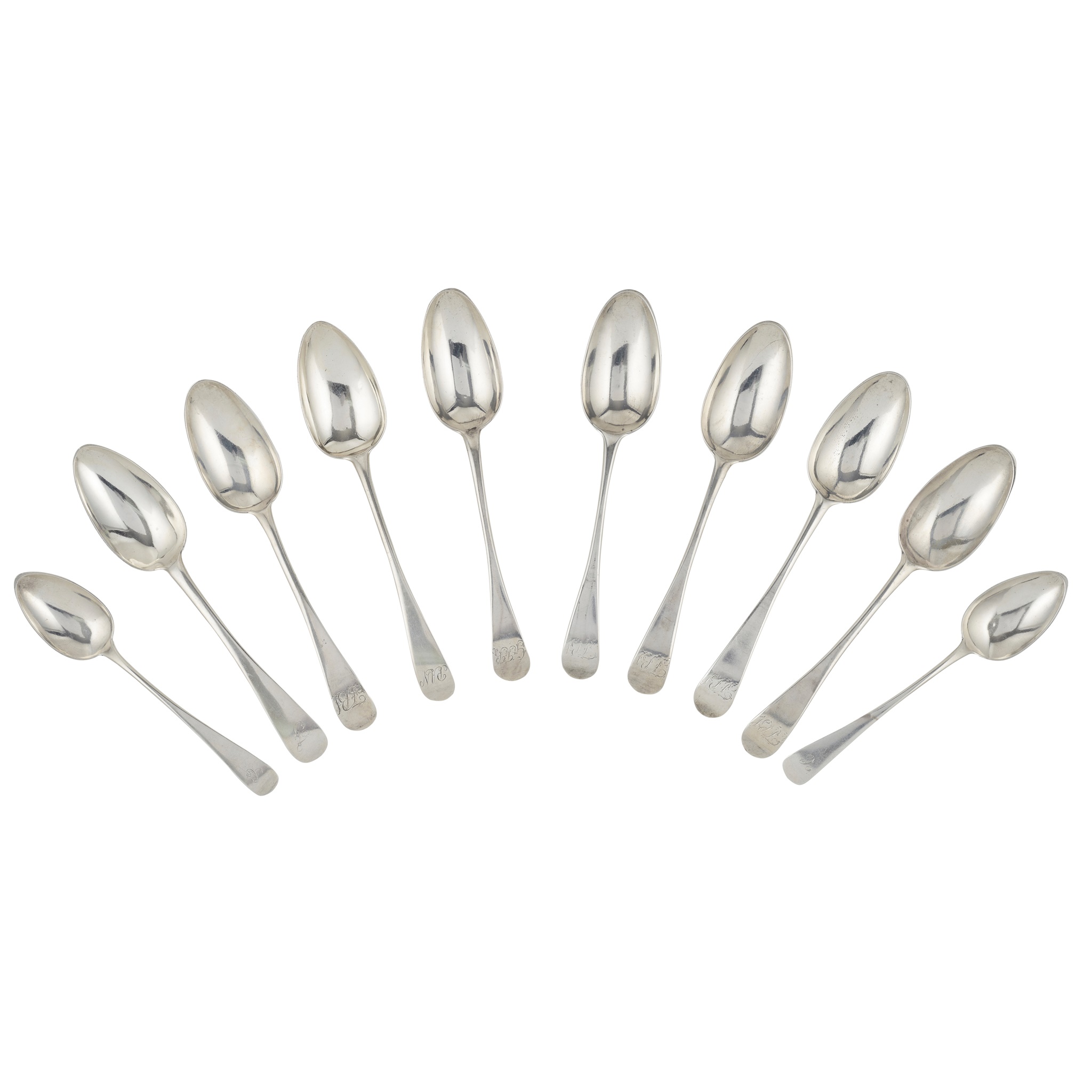 James Smith, marked I.S. ABD, of Old English pattern, engraved initials to the terminal; together with four various other similar Aberdeen tablespoons and two dessert spoons, Rettie & Son, Aberdeen with Edinburgh hallmarks for 1839, of Old English pattern, engraved initials to terminal