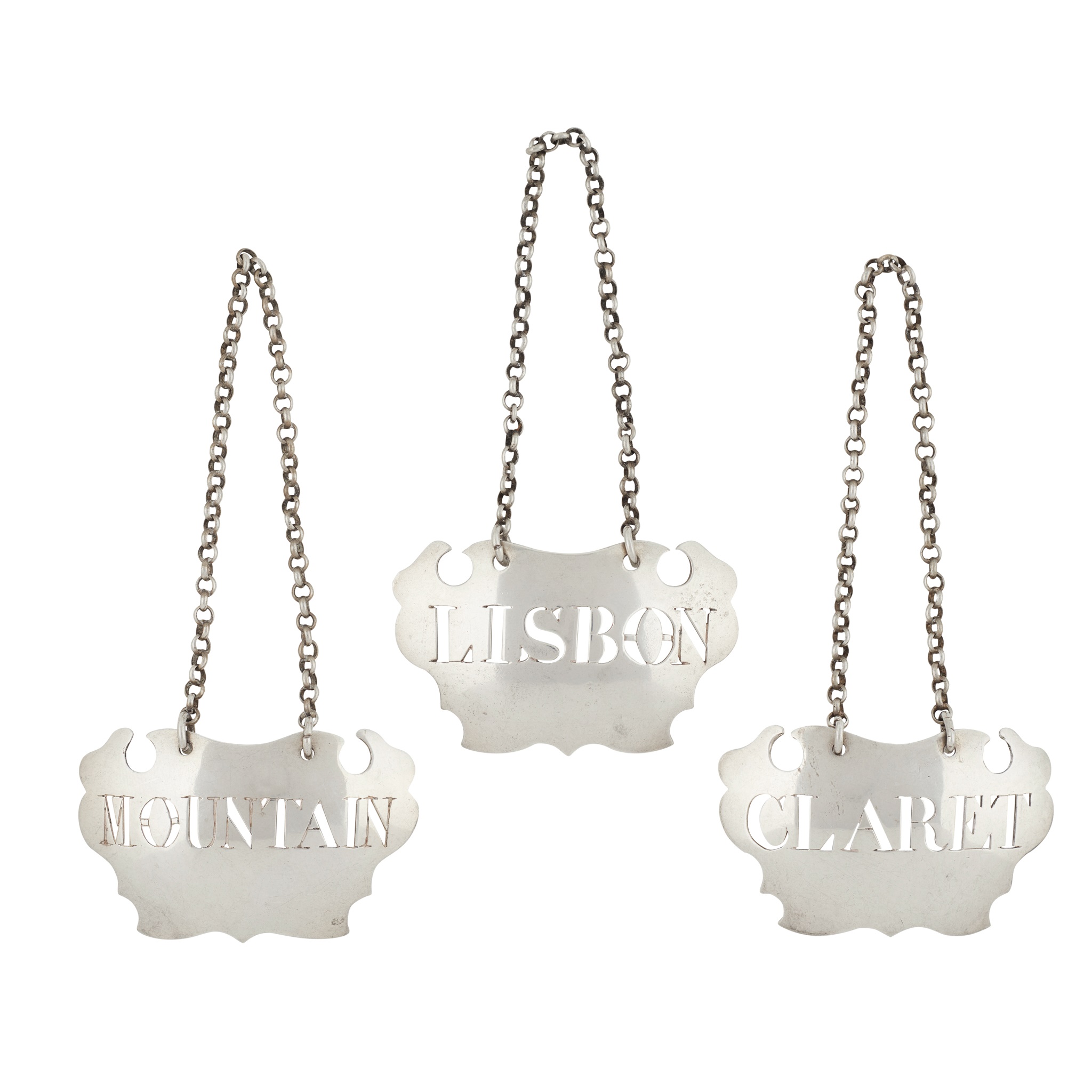 Sandilands Drinkwater, London circa 1750, each pierced for LISBON, MOUNTAIN and CLARET