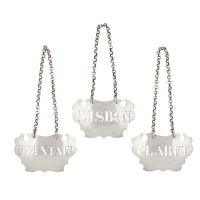 A set of three George II escutcheon wine labels