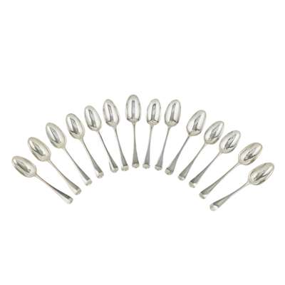 A collection of fourteen various Hanoverian pattern tablespoons