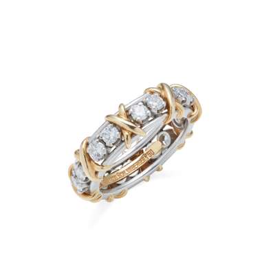claw set with sixteen round brilliant-cut diamonds, between 'X' details, stamped PT 950, signed TIFFANY&CO. SCHLUMBERGER750