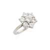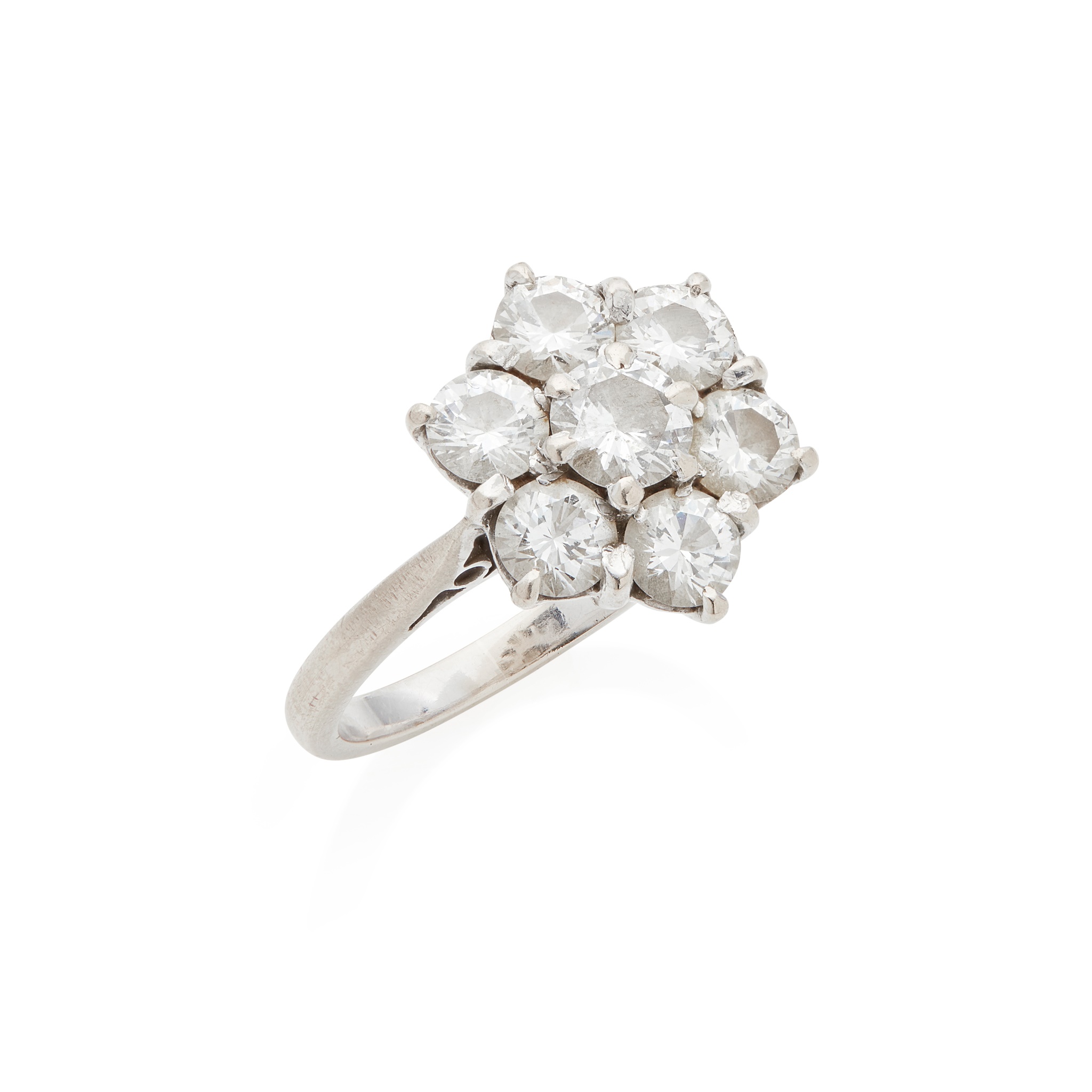 claw set with seven round brilliant-cut diamonds, to a plain shank