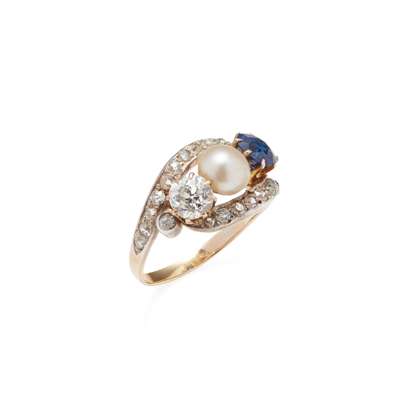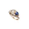 A sapphire, diamond and pearl set ring