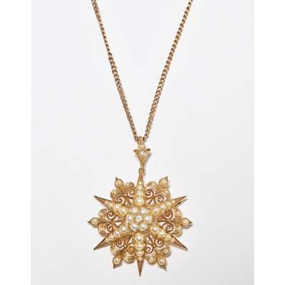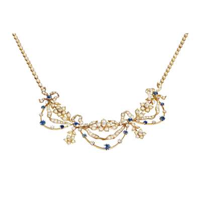 An Edwardian diamond, sapphire and seed pearl set necklace