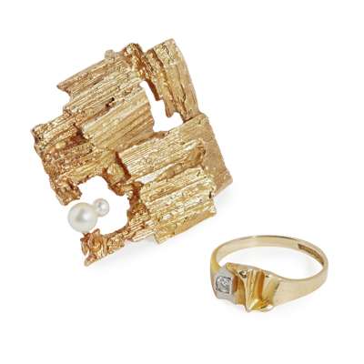 A contemporary 14ct gold and pearl set brooch, Lapponia