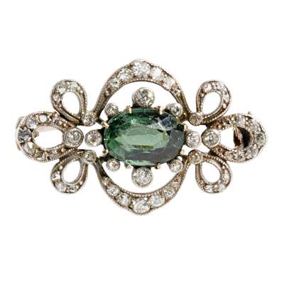 An 18ct gold tourmaline and diamond set brooch, Andrew Grima