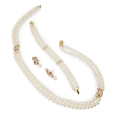 A suite of cultured pearl and diamond set jewellery, Mikura