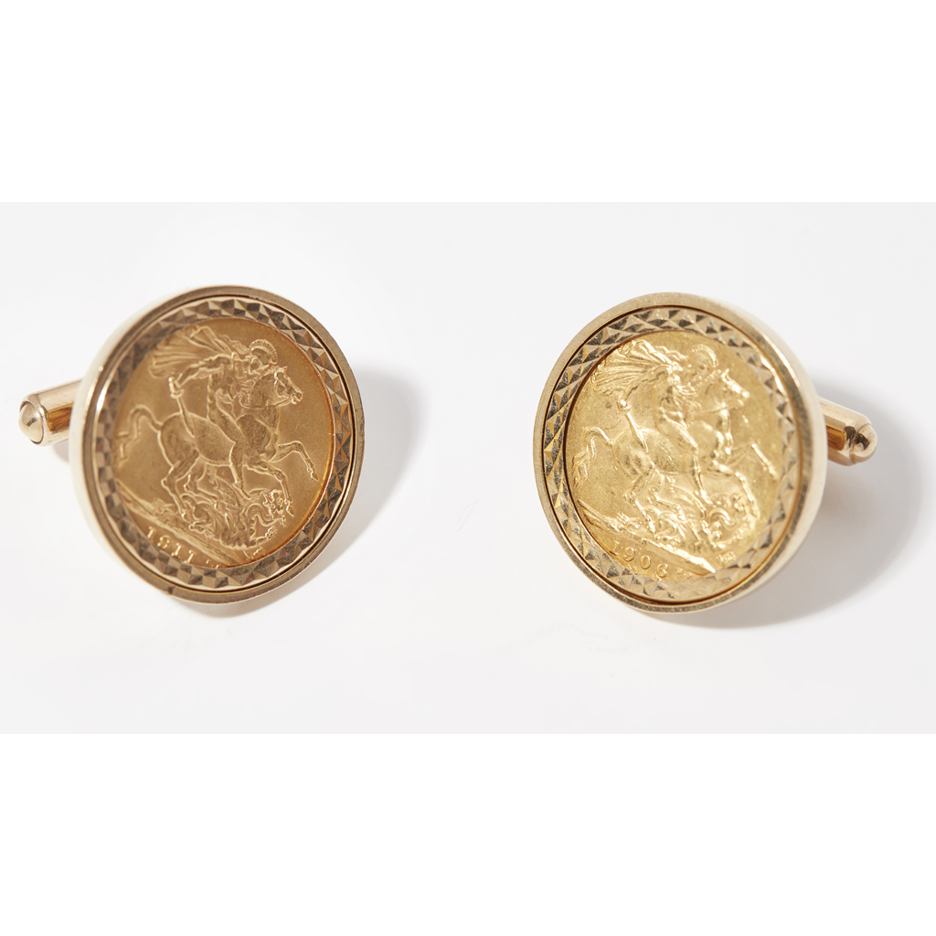 set with a 1911 and 1906 sovereign in 9ct gold detachable mount, torpedo secondary terminals