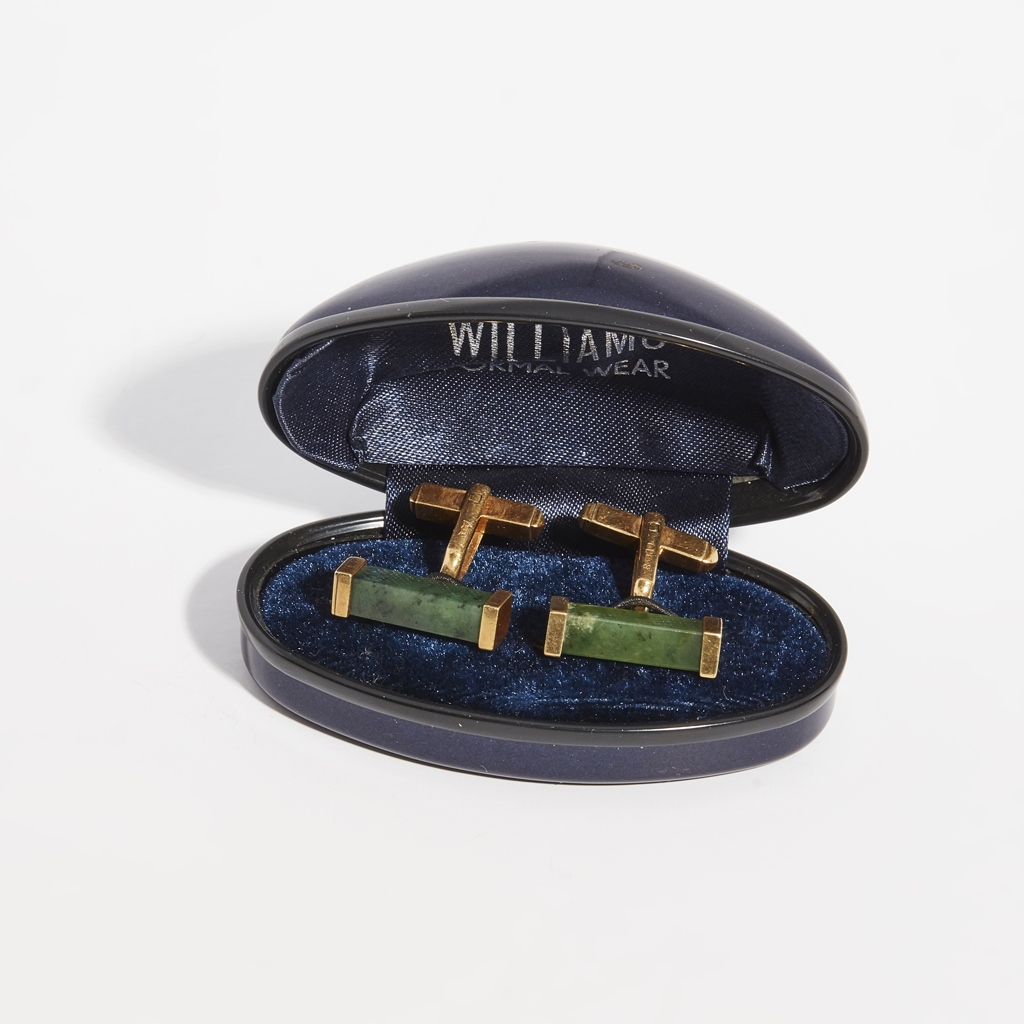A pair of 18ct gold jade set cufflinks