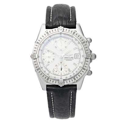 Chronomat Windreader, Ref. A13352, white dial and silvered register dials, rotating bezel, screw down crown, Breitling black leather strap and stainless steel deployant clasp