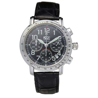 Masterpiece, MP6178, tachymeter bezel, black dial with date aperture, black sub dials, luminous hands, screw down crown, flyback, leather strap, fold over clasp, with box and papers