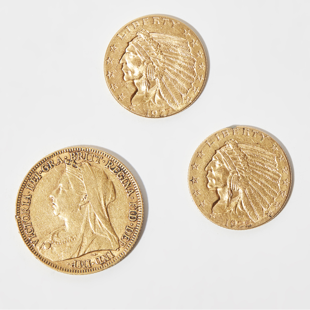 the sovereign 1894, VH; the $2.5 1925 and 1927
