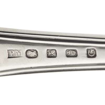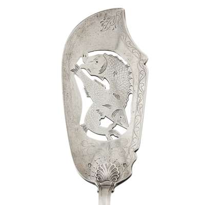 PM, Dublin 1827, double struck, Queen's pattern, engraved crest, the flat with engraved and pierced decoration