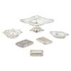 to include; a small tazza, FR & Co. Sheffield, two small bon-bon dishes, a filigree decorated cigarette case, a Victorian silver purse, and a George III small snuff box, R.B, London 1800 (6)