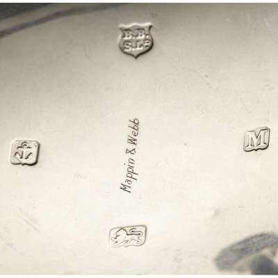 to include, a modern large sauceboat,Barker Brothers Silver Ltd, Birmingham 1936 retailed by Mappin & Webb, of traditional form, scalloped border, leaf clasped S scroll handle, raised on four cast shell feet; together with a smaller pair, Edward & Sons 1925; a tazza, Mappin & Webb Ltd, Birmingham 1926, pierced border, raised on a knopped spreading foot, and a hexagonal twin handled sugar bowl (5)