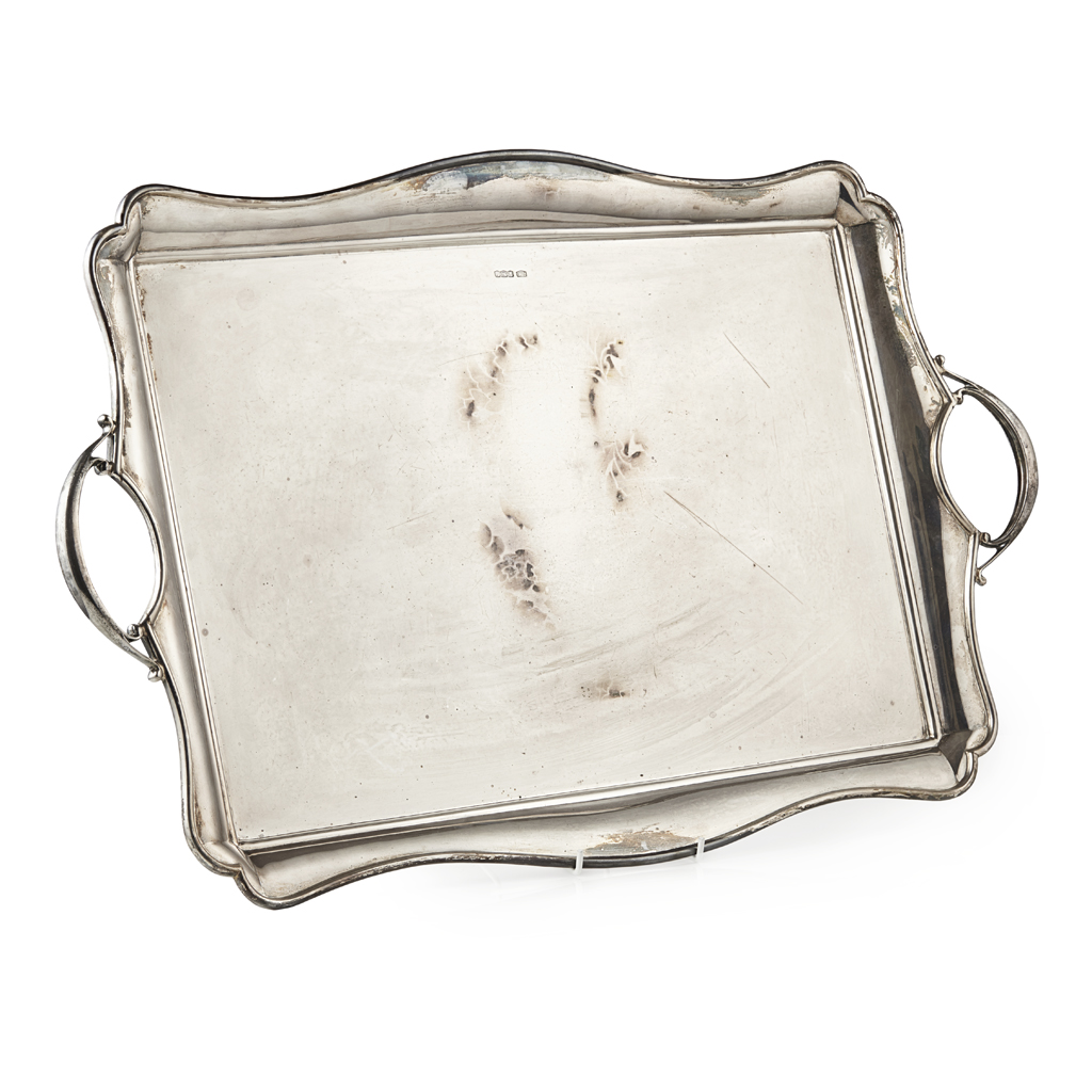 Roberts & Belk Ltd, Sheffield 1923, of rectangular form, moulded curved edges, loop handles
