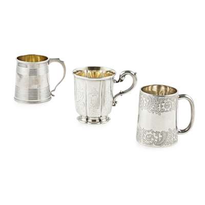 A group of three christening mugs