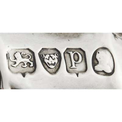 The armorial bearings as engraved upon this William IV English Sterling Silver Salver by B.M. hallmarked London 1832 are those of the family of Knapp impaling Spencer. These armorial bearings denote the marshalling of a marital coat showing on the dexter (the heraldic right on the left as you view the piece) the arms of the husband and on the sinister (the heraldic left on the right as you view it) the arms of the wife. They may be blazoned as follows: