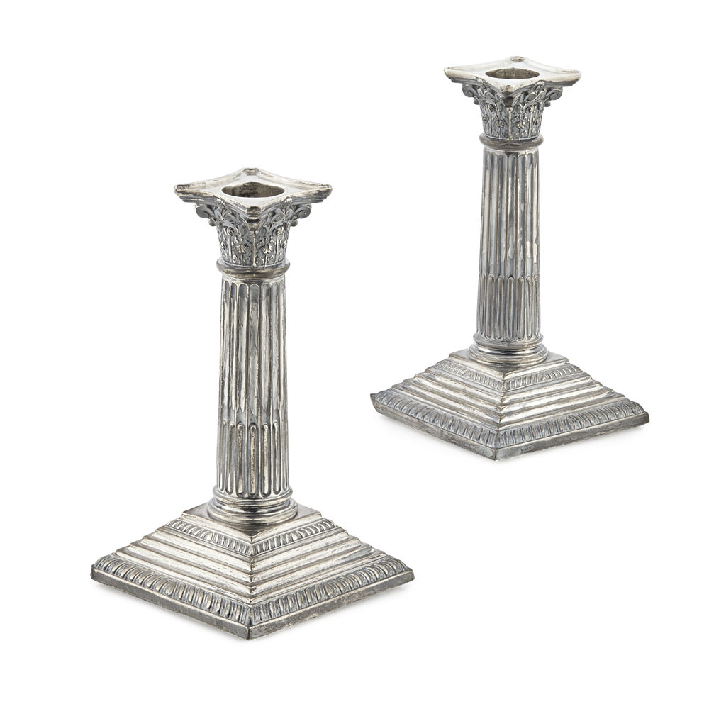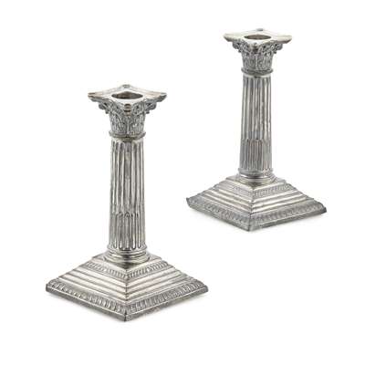 (loaded) of traditional form, together with a three piece tea service, Elkington & Co, Birmingham 1940, of canted rectangular form with angular handles and stepped foot; together with a matched silver plated hot water pot (4)