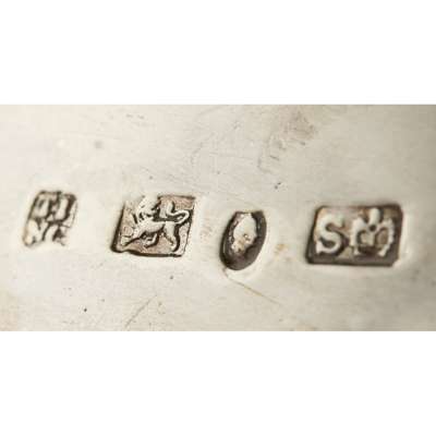 T J and N Creswick, Sheffield 1835, each with serpentine base with moulded scrolling decoration, engraved crest and coronet, the reeded baluster stem, with leaf clasping and capital, three reeded scrolling branches with leaf detail, plain sconces with removable drip trays, the central light with flower stopper and drip tray (loaded) (2)