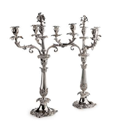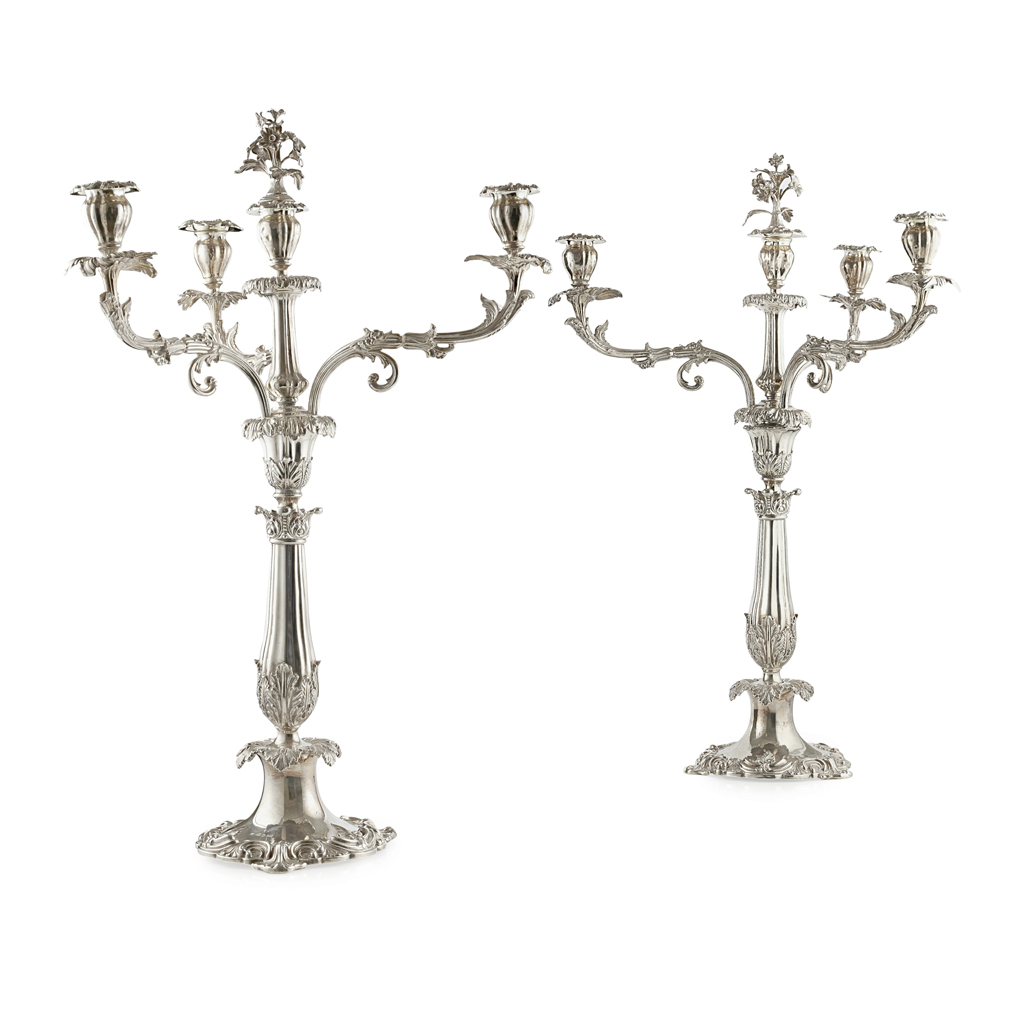 A pair of William IV four light table candelabra