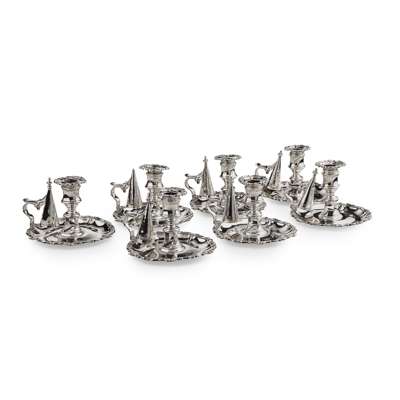 A set of seven George IV silver chamber-sticks