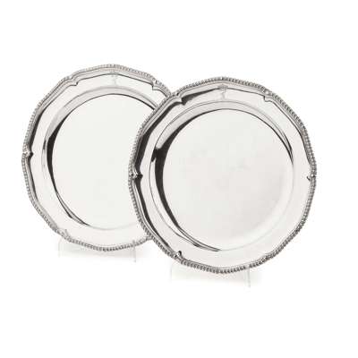 The arms and crests on this and the following two lots of this silver dinner service are for Peter King (1736-1793), later 6th Baron King of Ockham, and his wife, Charlotte, daughter of Edward Tredcroft of Horsham in Sussex. They were married on the 24th November 1774. As this impressive service is hallmarked for 1773, one can only assume that it was commissioned as a wedding present for the couple.