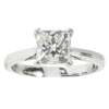 claw set with a single princess cut diamond, to a plain white metal shank stamped PT900; with accompanying report by GIA, dated 29.05.15, numbered 1205148812, stating that the diamond is 1.51cts, F colour, VS2 clarity