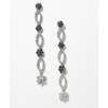 each composed of three graduated black diamond clusters, terminating in a colourless round brilliant cut diamond cluster, the curving links also set with small round brilliant cut diamonds, post and butterfly fittings