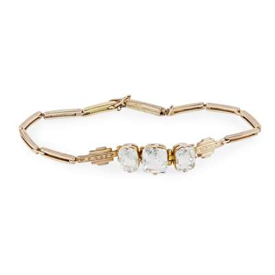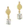 to include a bracelet, pendant and earrings, each set with a squared cushion cut or oval cut aquamarine, with geometric detail throughout (3)