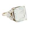 claw set with a square emerald-cut aquamarine, each shoulder set with seven eight-cut diamonds, to a plain shank stamped 18ct