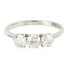 claw set with three old round cut diamonds, to a plain white metal shank stamped 18CT PLAT