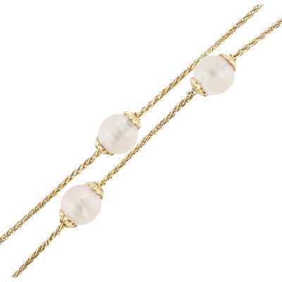 the fancy link chain set at intervals with nine rose quartz beads, unmarked