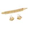 the bracelet circa 1880, engraved script, bar links with chased terminals later clip fittings; a pair of 19th century pendant earrings, chased mask motifs, with bead drops (2)