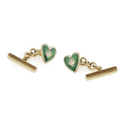 A pair of enamel heart shaped cufflinks