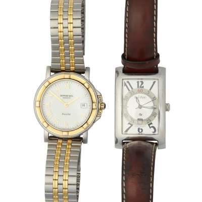 Parsifal, Ref. 9530, white dial, gold Roman numerals, subsidiary date aperture, two coloured bracelet, fold over clasp, together with a unisex wrist watch, Paul Picot, stainless steel cased wrist watch, American Bridge model, curved tank shaped case, Arabic large numerals, sweep seconds hand, date aperture, automatic movement, leather strap, deployant fold over buckle (2)